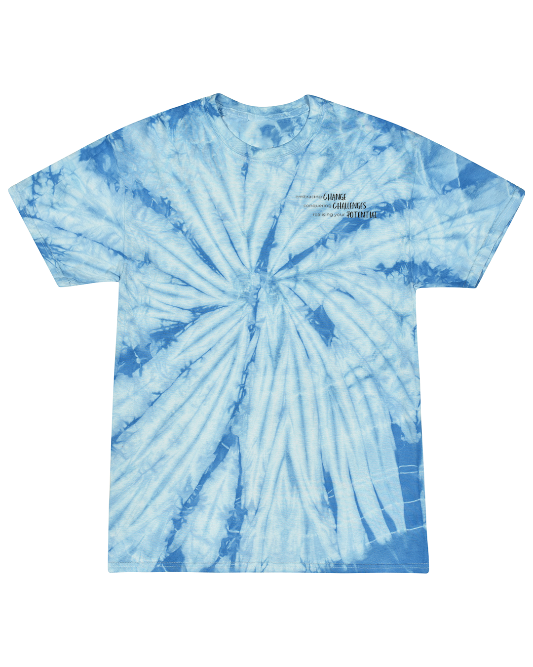 Stand out from the crowd wearing our baby blue tie-dye shirt, featuring a double-needle stitched neckline and The Pots Coach branding.